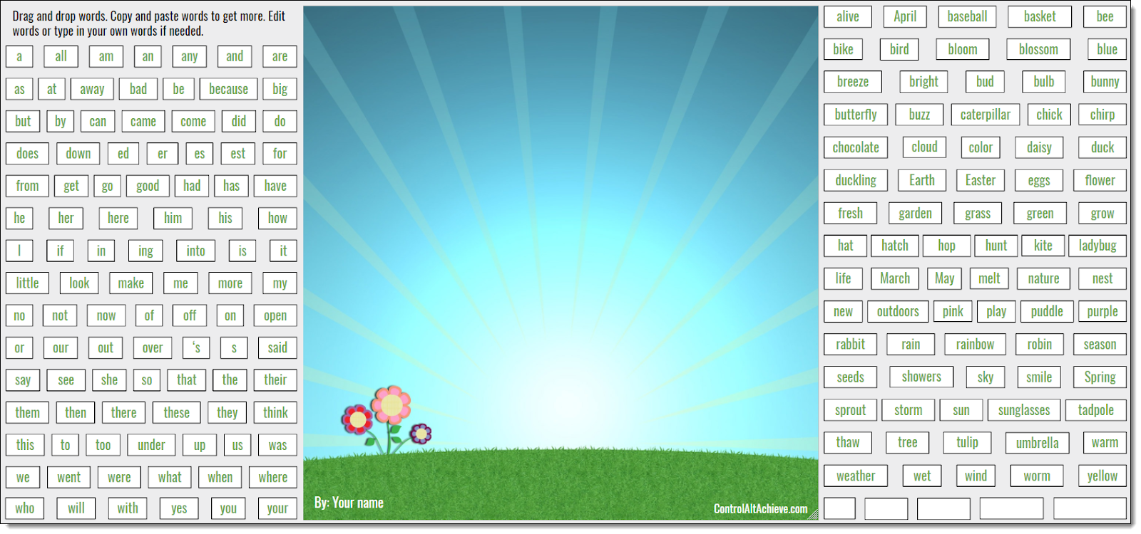 - Springtime Magnetic Poetry Template – Google Drawing link